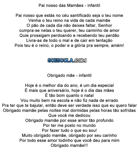 Nestas postagem trago para vocês textos curtos prontos para imprimir com músicas para trabalhar o Dia das Mães com alunos da Educação Infantil.