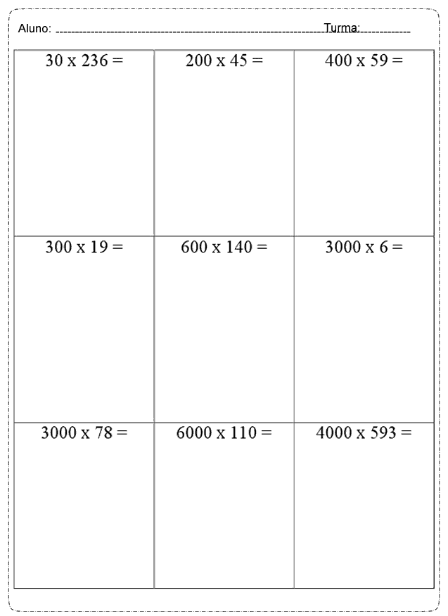 | Atividades de multiplicação para o 5° ano do ensino fundamental |