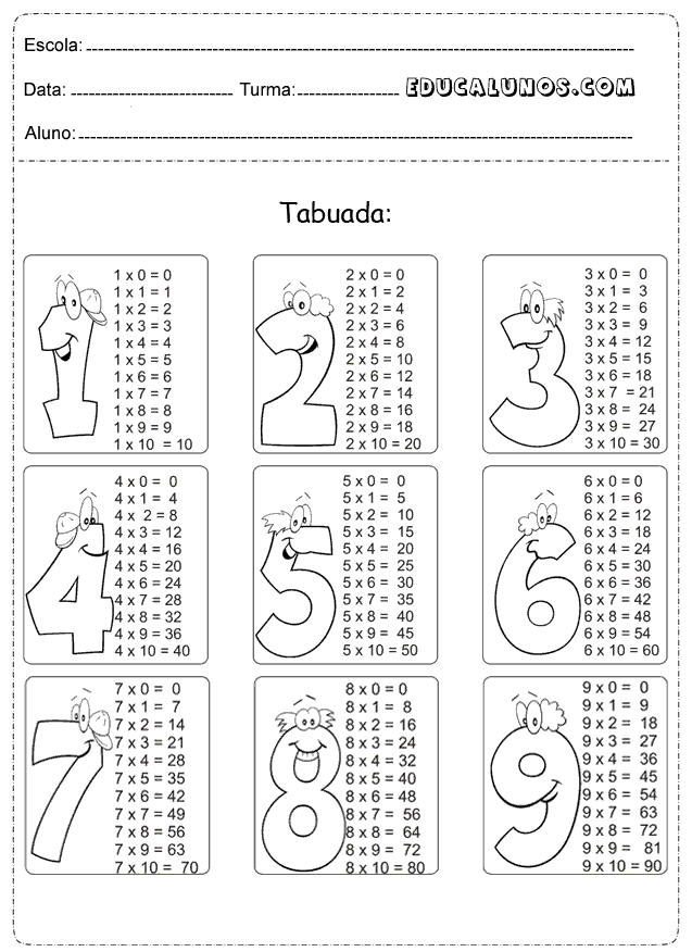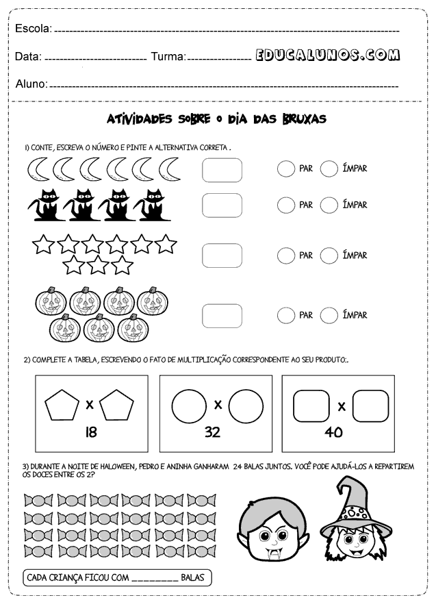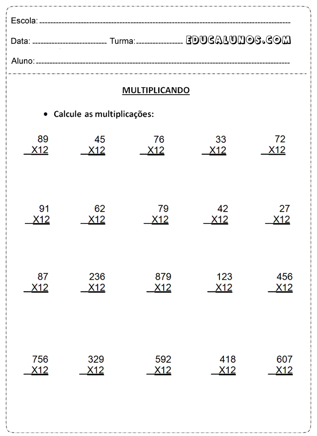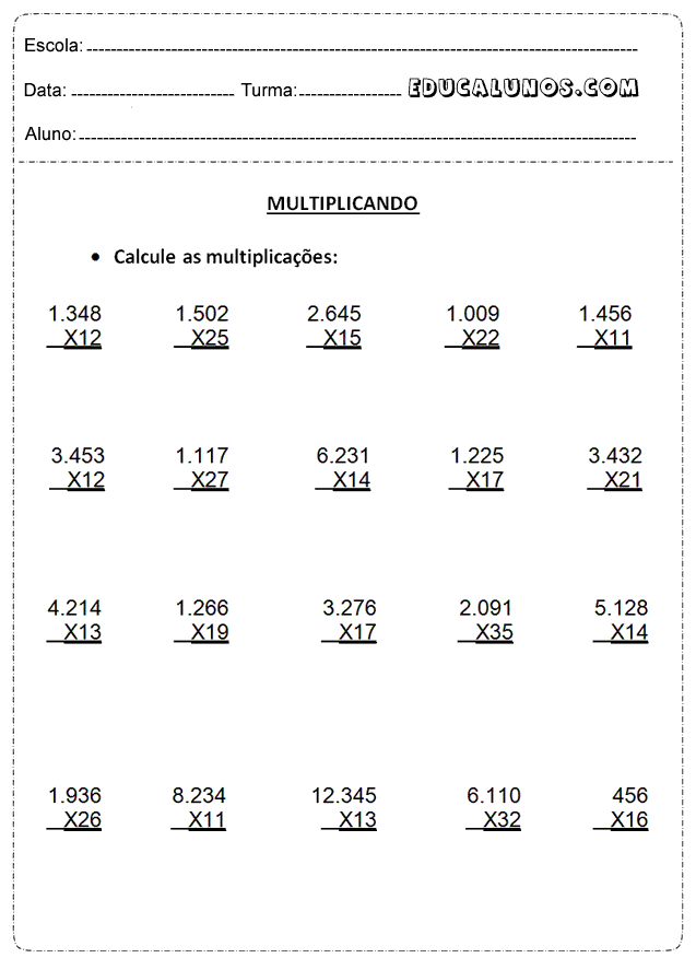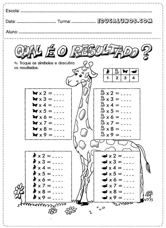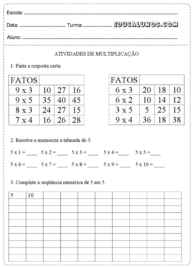 Atividades de multiplicação para o 2°ano, 3°ano, 4°ano e 5°ano do ensino fundamental
