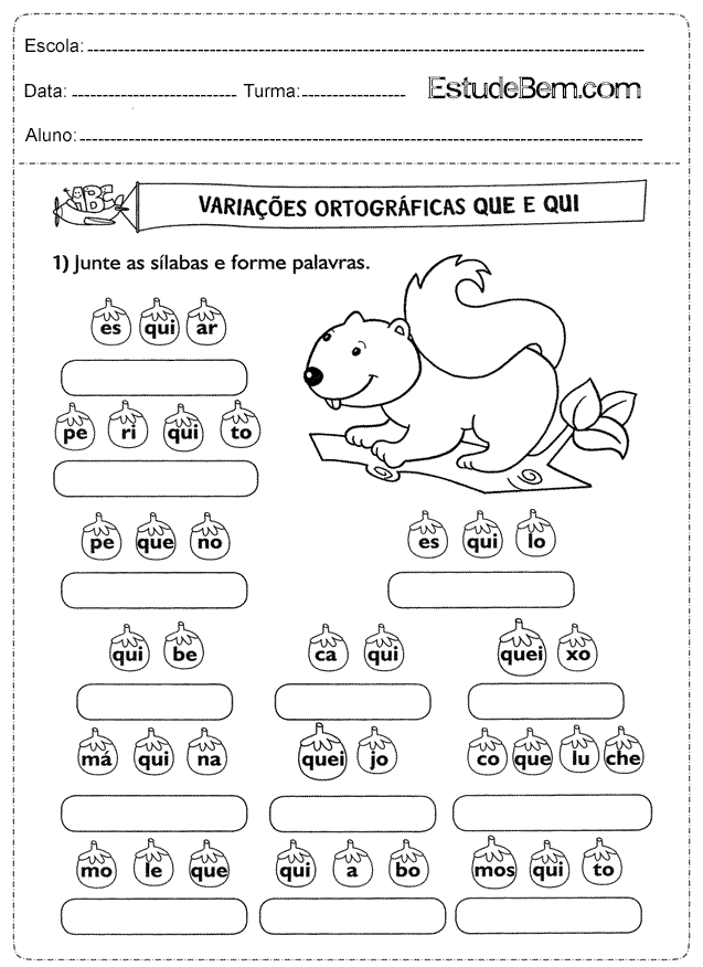 Atividades português 3° ano fundamental com questões sobre: Sons nasais ão, ões, ã, ães, sílabas e símbolos, ligue as colunas e copie a palavra, coisas pequenas e coisas grandes, variações ortográficas QUE e QUI, complete as palavras da segunda coluna com a letra R e, depois, escreva as palavras, substitua os desenhos por nomes próprios ou comuns e reescreva as frases e forme palavras unindo as sílabas cujos símbolos são iguais.