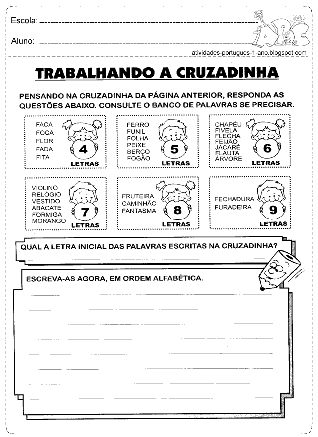 | Qual a letra inicial das palavras escritas na cruzadinha |
