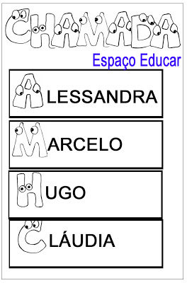 Modelos e moldes de chamadinha para a educação infantil, maternal etc.