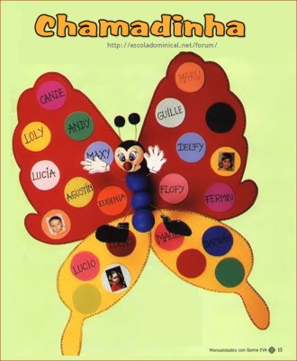 Chamadinha borboleta (com a foto das crianças. Podem ser feitas fichas com os nomes que serão presas junto com as fotos)