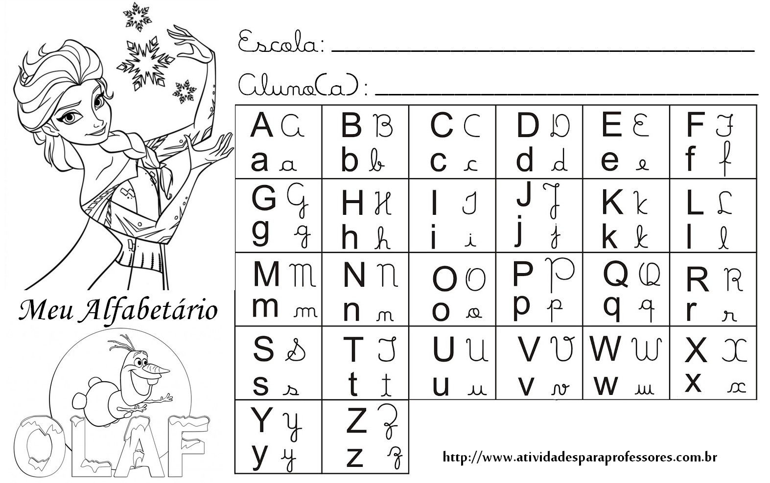 Queridos professores, hoje trouxe três alfabetários do Frozen, aquele filme lindo que fez o maior sucesso com a garotada, para que vocês utilizem com seus alunos, se quiserem. Cliquem na imagem para ver em tamanho maior e salvar em seu computador ou mandar imprimir, clicando control +p.
