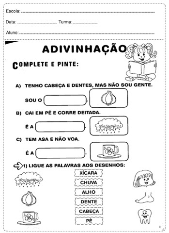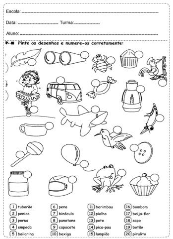 Navegando pela INTERNET encontrei uma lista de atividades para colorir e imprimir para a alfabetização.