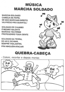 PROFESSOR(A): Após algumas colocações sobre o texto, evidencie algumas características do bom soldados e peça que as crianças contribuam dizendo sobre as qualidades de um bom soldado. O bom soldado precisa: ser Corajoso, ser Patriota, ser Leal à Pátria, Trabalhar bem em equipe, Respeitar os companheiros, etc.