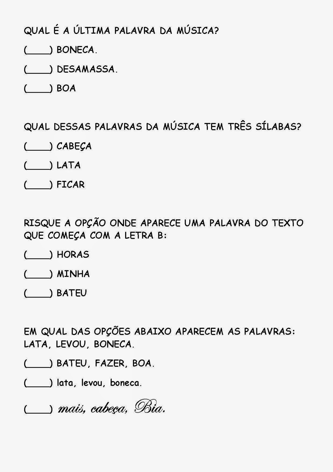 - Resolver situações-problema envolvendo a música BONECA DE LATA;