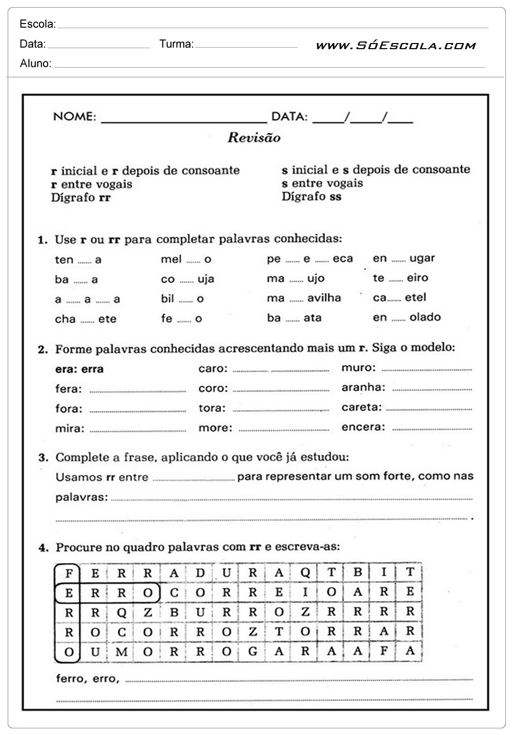 A seguir, iremos disponibilizar 10 atividades de ortografia para serem trabalhadas em sala de aula, estas já estão prontas para imprimir.