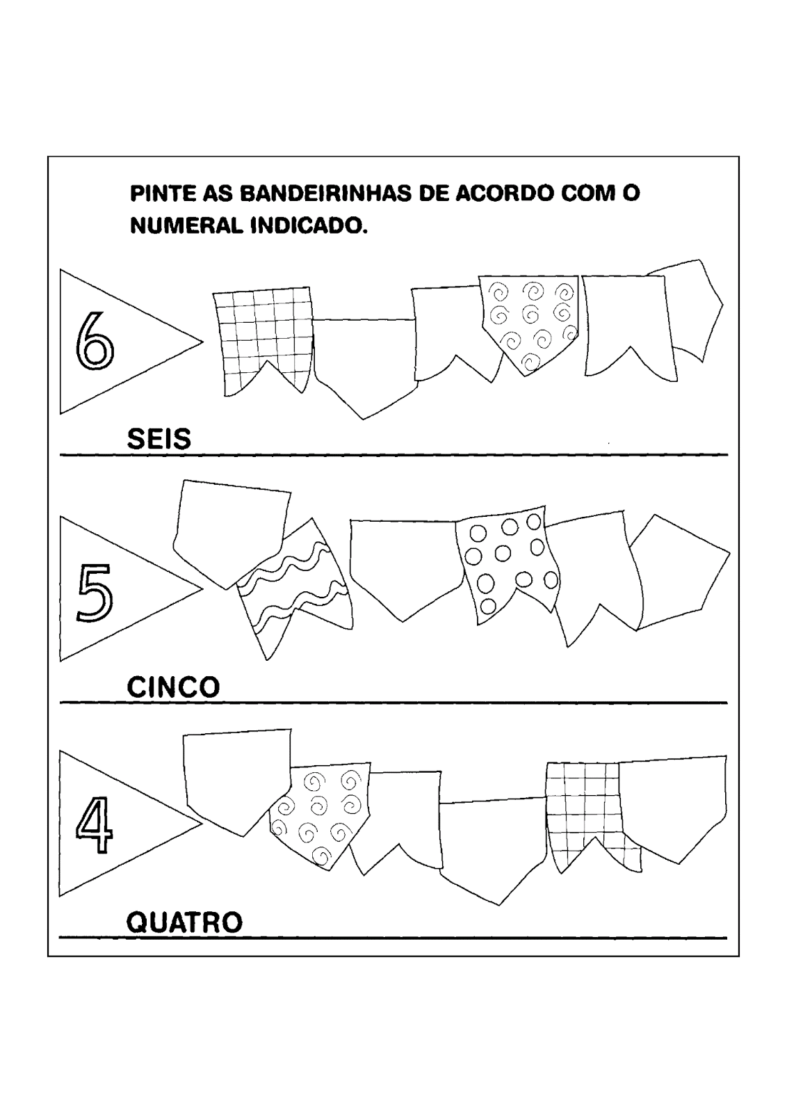 Pinte as bandeirinhas de acordo com o numeral indicado