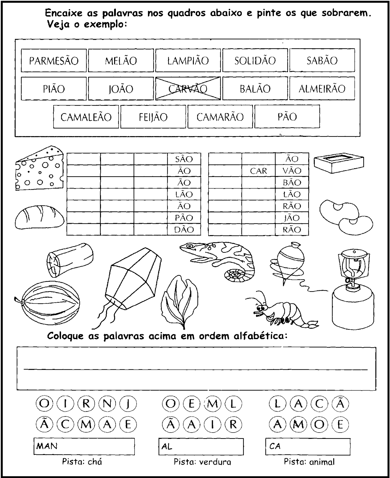Atividades com Palavras Terminadas em ÃO Colocar em ordem alfabética e descobrir palavras terminadas em ÃO.