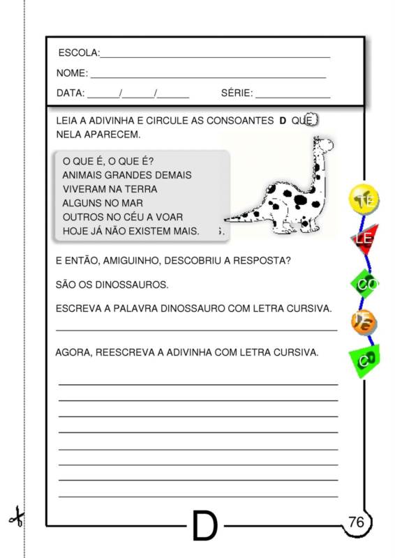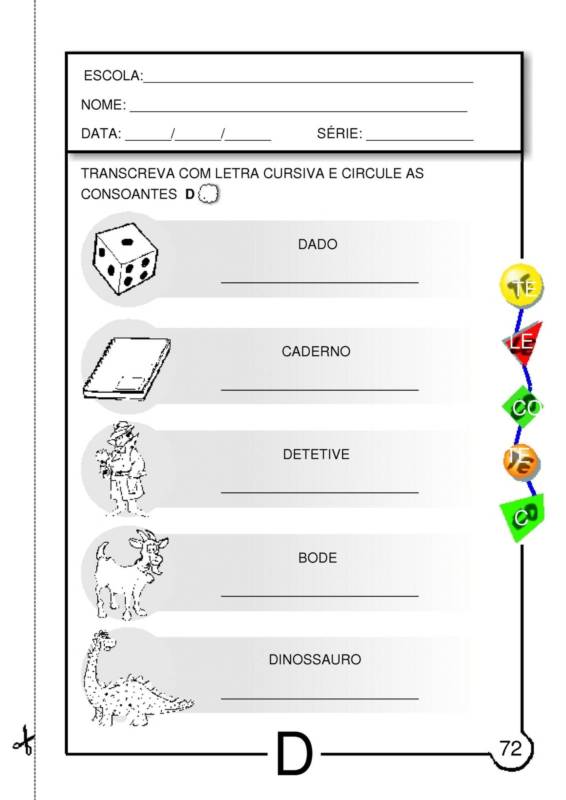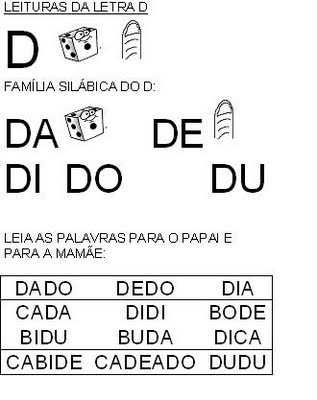 ATIVIDADES DE ALFABETIZAÇÃO COM A LETRA D