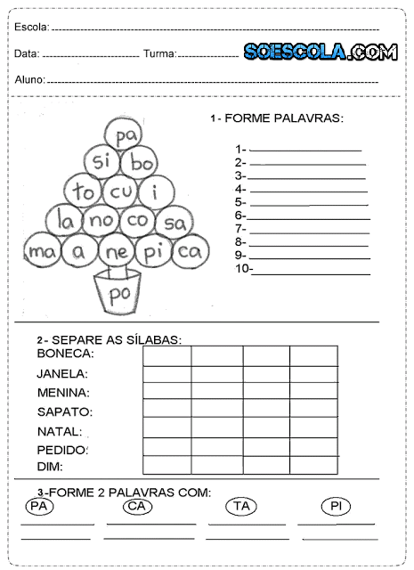 Hoje trago para vocês atividades prontas para imprimir para alfabetização infantil, para alunos do 1º, 2º e 3º ano. Faça bom proveito, espero que gostem.