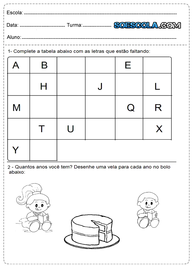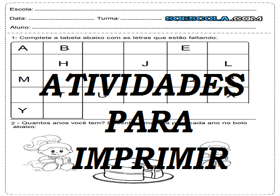 Hoje trago para vocês algumas atividades para 1º ano de português prontas para imprimir e com alguns desenhos.