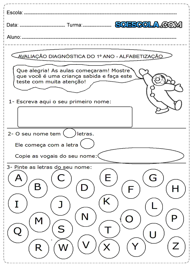 - Avaliação diagnóstica do 1° ano – Alfabetização