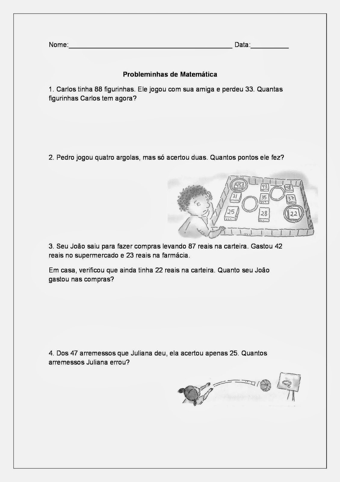 São problemas de adição e subtração que para serem resolvidos os alunos precisam ler e interpretar o que a situação pede.