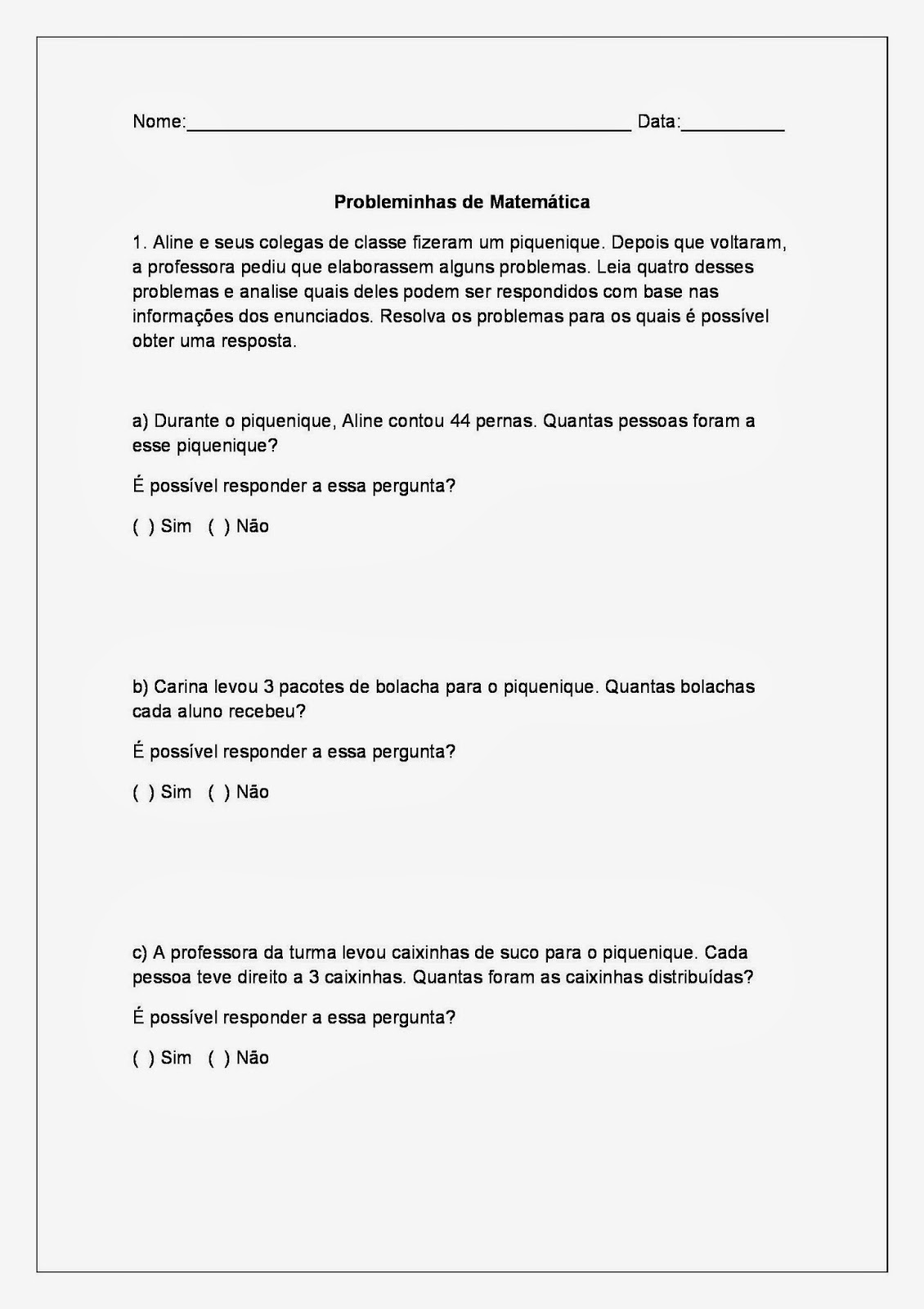 O objetivo desses problemas é que os alunos criem diferentes estratégias de resolução e análise das atividades.