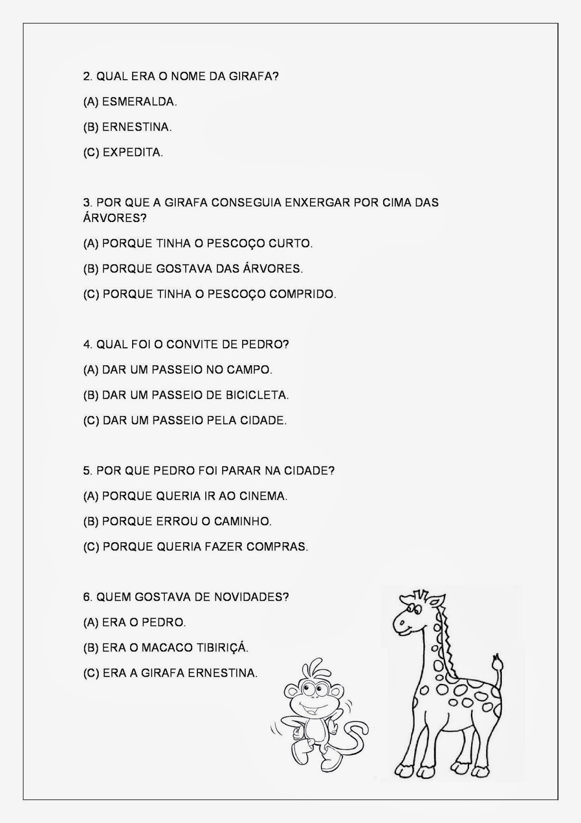Atividades de interpretação do texto “Sabe o que a girafa espiou?”