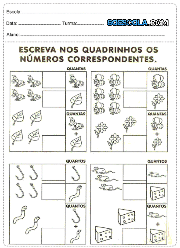 Hoje o site SOESCOLA.COM, trás para vocês diversas atividades prontas para imprimir de matemática para séries iniciais. Espero que Gostem.