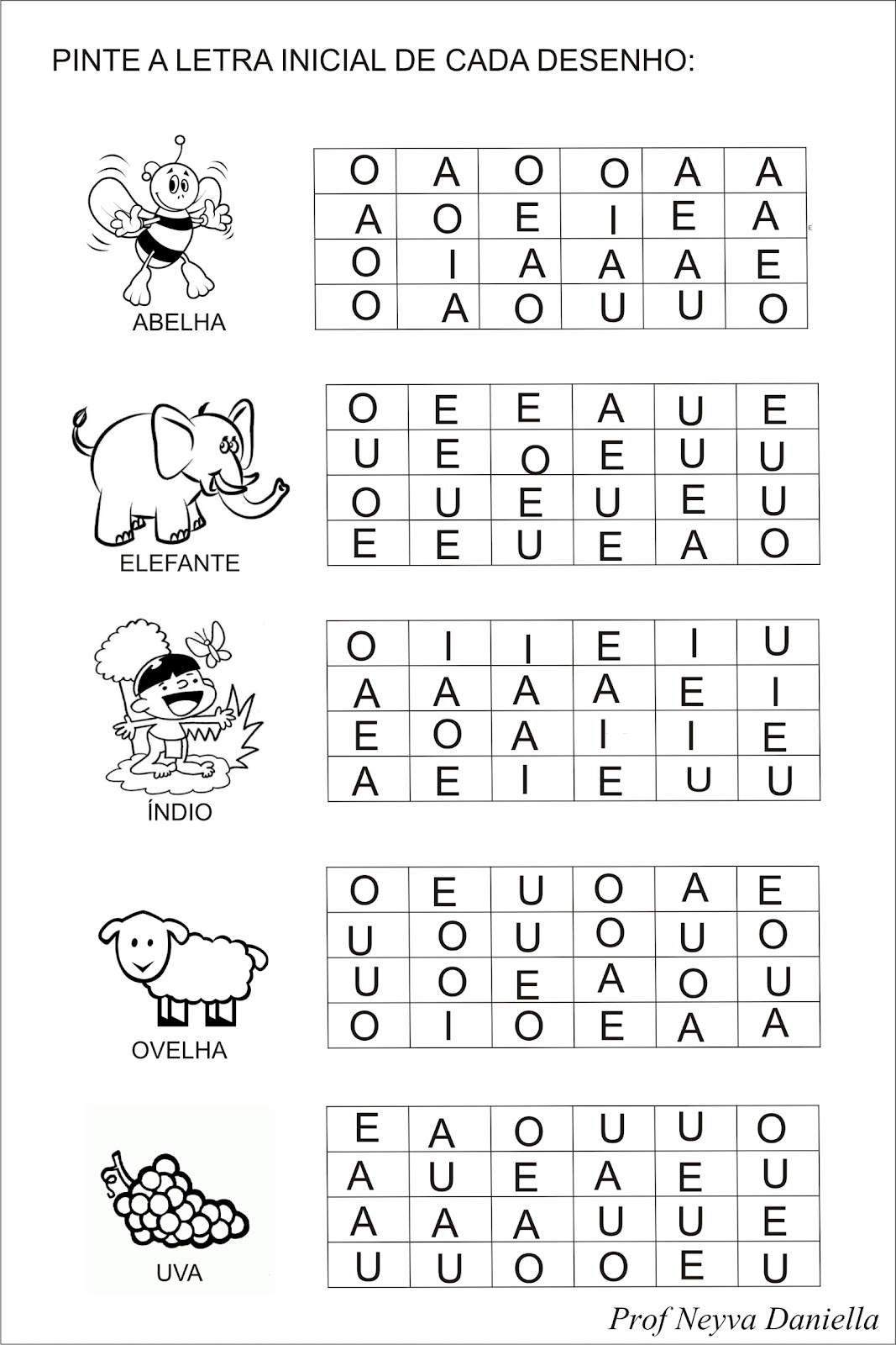 Pinte a letra inicial de cada desenho e depois pinte os desenhos da atividade.