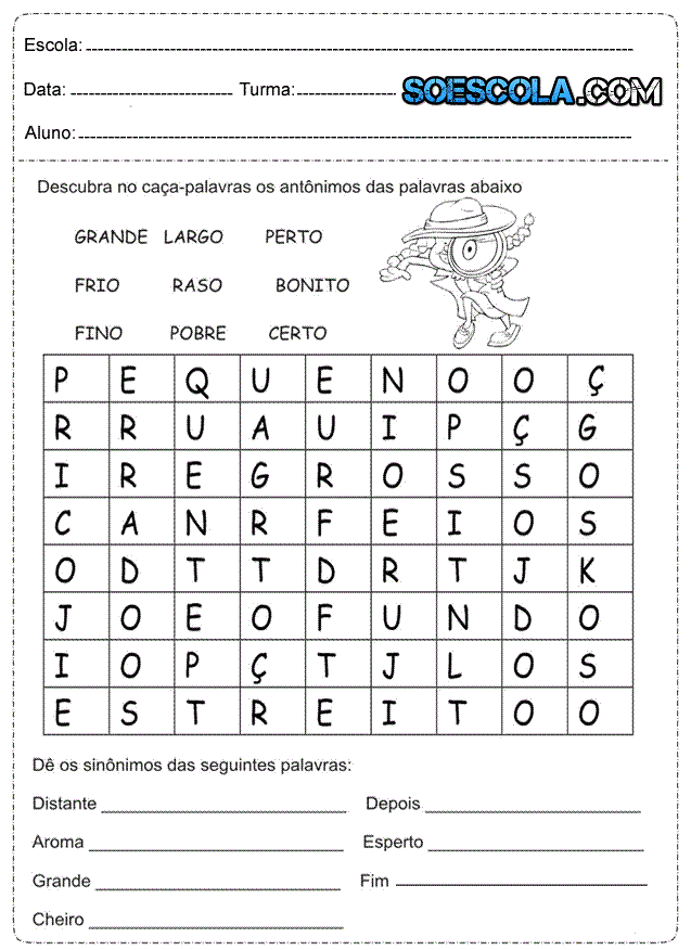 - Descubra no caça palavras os antônimos das palavras abaixo