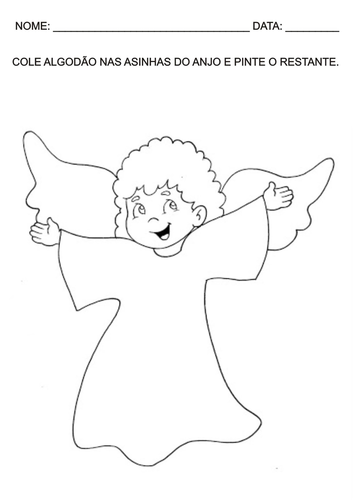 Cole algodão nas asinhas do anjo e pinte o restante.