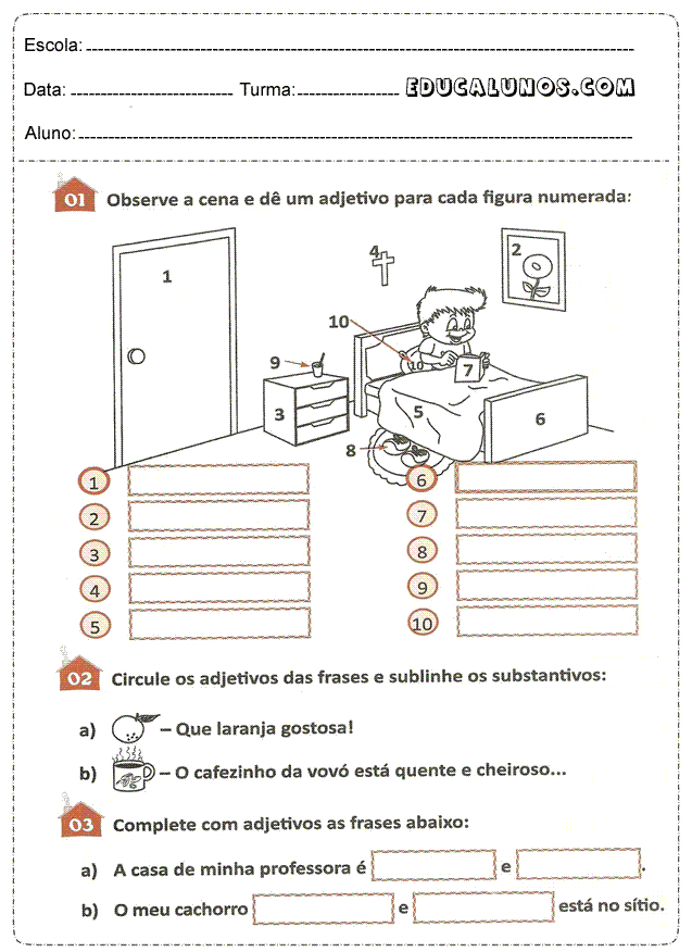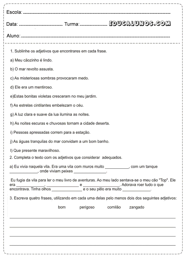- Sublinhe os adjetivos que encontrares em cada frase