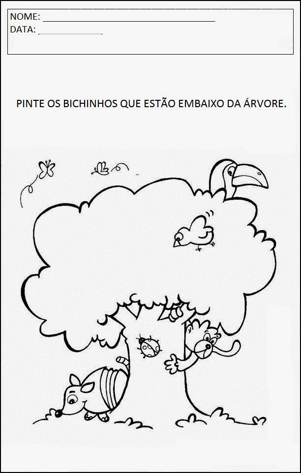 Pinte os bichinhos que estão embaixo da árvore.