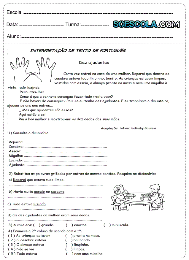 - Atividades de interpretação de texto com o tema: A escola estadual