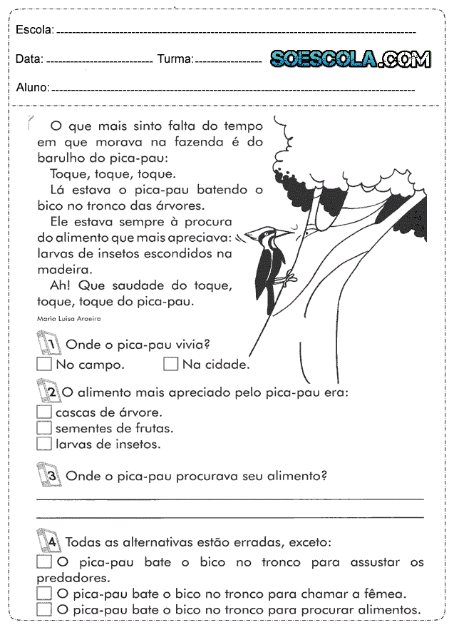 - Interpretação de texto sobre o Pica-Pau