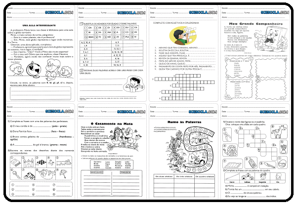 Atividades para o 3° ano de português para imprimir com exercícios sobre: