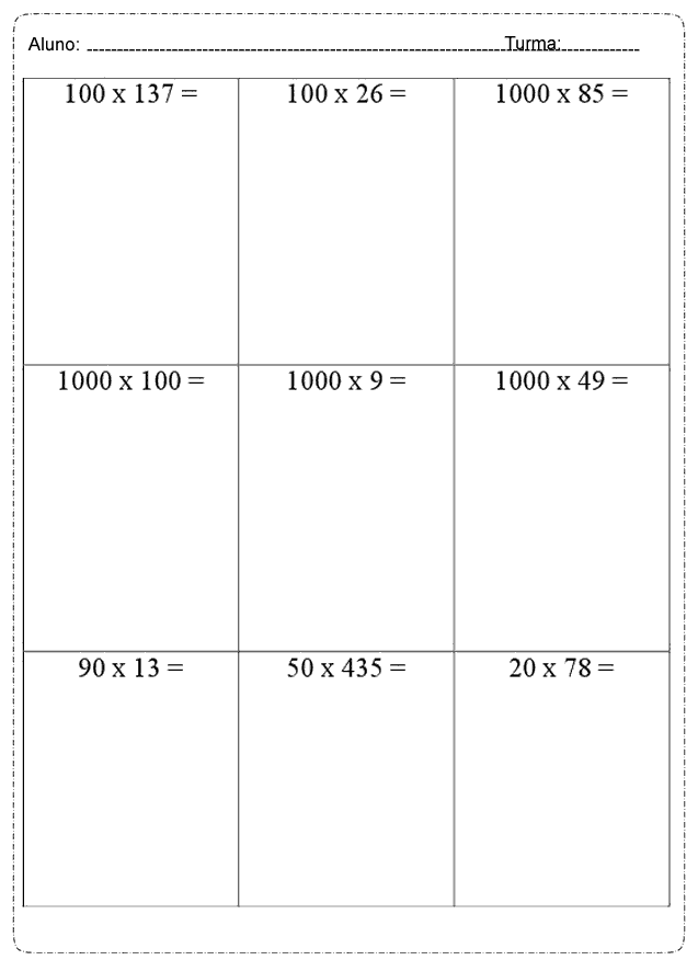- Arme e efetue as atividades de multiplicação para o 5° ano