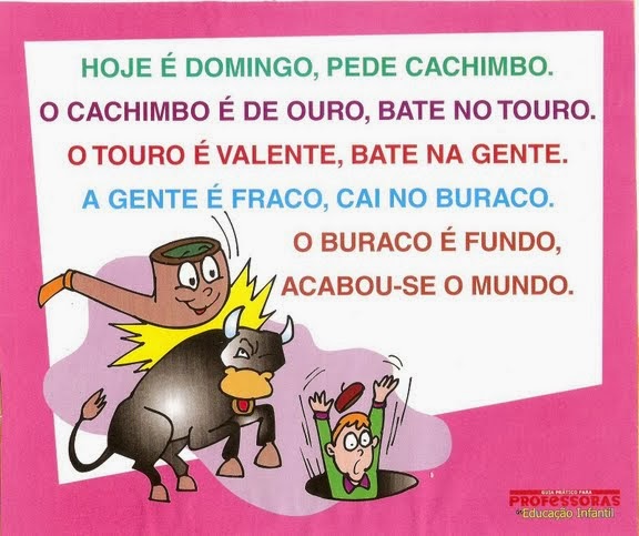 No post de hoje trago algumas Parlendas Ilustradas para serem usadas na sala de aula, pregadas ao lado da lousa, como ficha de leitura para os alunos que estão no processo de alfabetização ou como vocês acharem melhor, sei que ideias vocês têm de sobra.