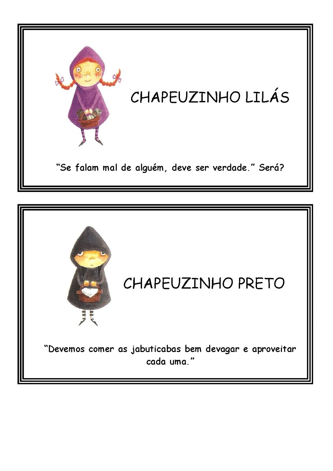 Sequência didática para 1º ano com o livro Chapeuzinhos Coloridos. Atividades de Interpretação, jogo da memória, caderno de receitas, comparação de diálogos, etc. São seis meninas bem diferentes que usam chapeuzinhos, mas a história é bem diferente da história da Chapeuzinho Vermelho.