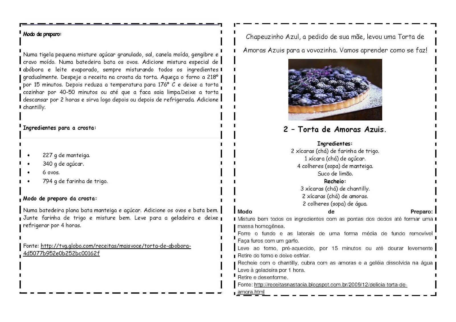 LIVRO DE RECEITAS BASEADAS NAS HISTÓRIAS DO LIVRO CHAPEUZINHOS COLORIDOS