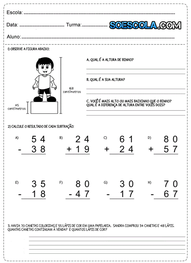 Atividades de matemática 1° série para imprimir, porém pode ser aplicada em alunos da 2° série já que algumas são basicamente uma pegadinha para as crianças do ensino fundamental.