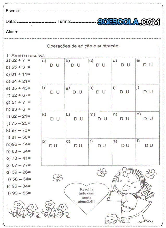 - 91. Atividades PARA IMPRIMIR de Matemática 2º ano – Adição e Subtração