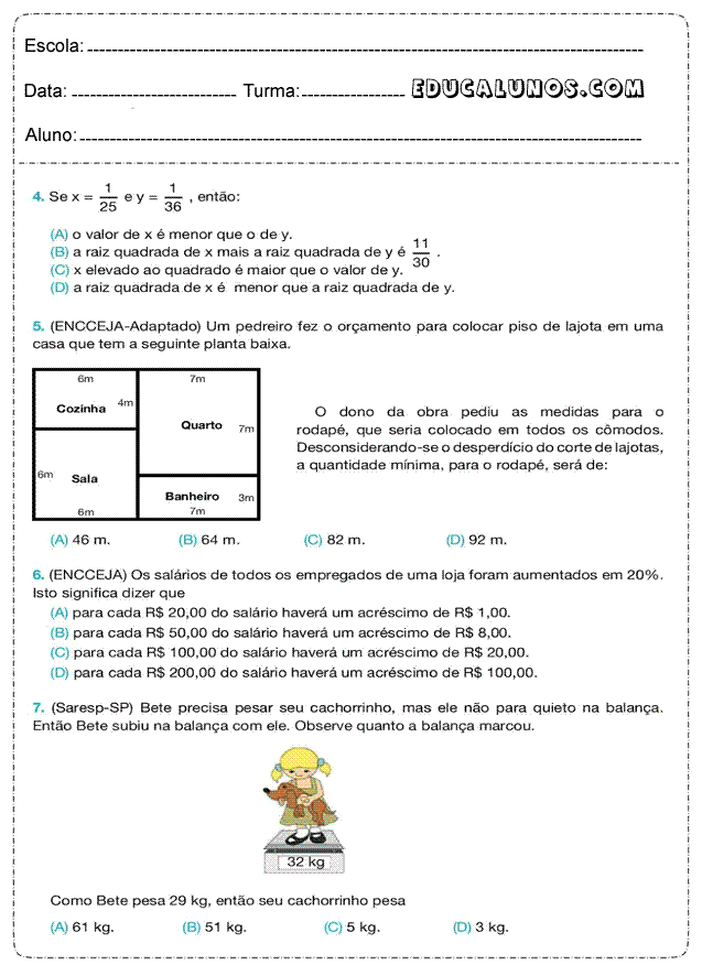 Atividades de matemática 6° ano com os seguintes exercícios: