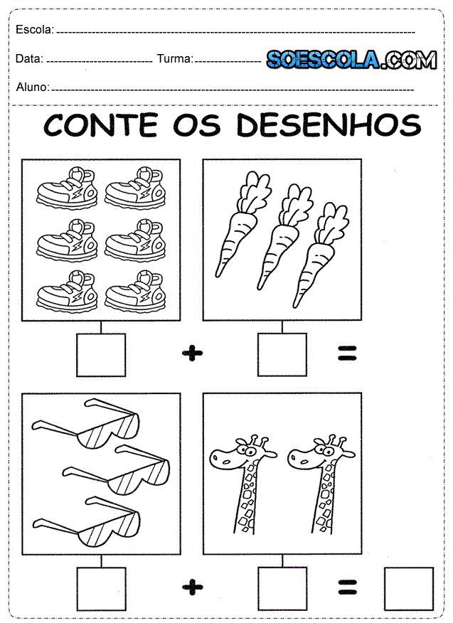 Atividades de matemática 1° ano fundamental: são atividades que podem ser utilizadas como provas, com opção para imprimir ou baixar e utilizar na educação dos alunos do ensino fundamental o conteúdo possui continhas de somar (Calculo matemático) e contar as quantidades das frutas e folhas.