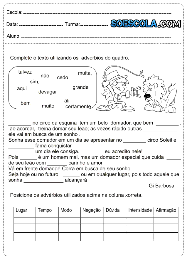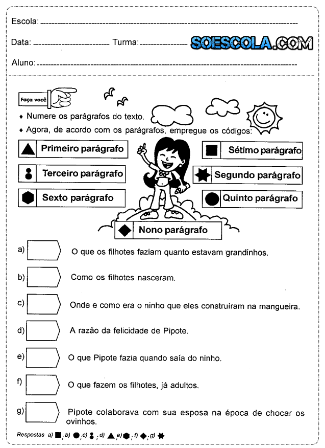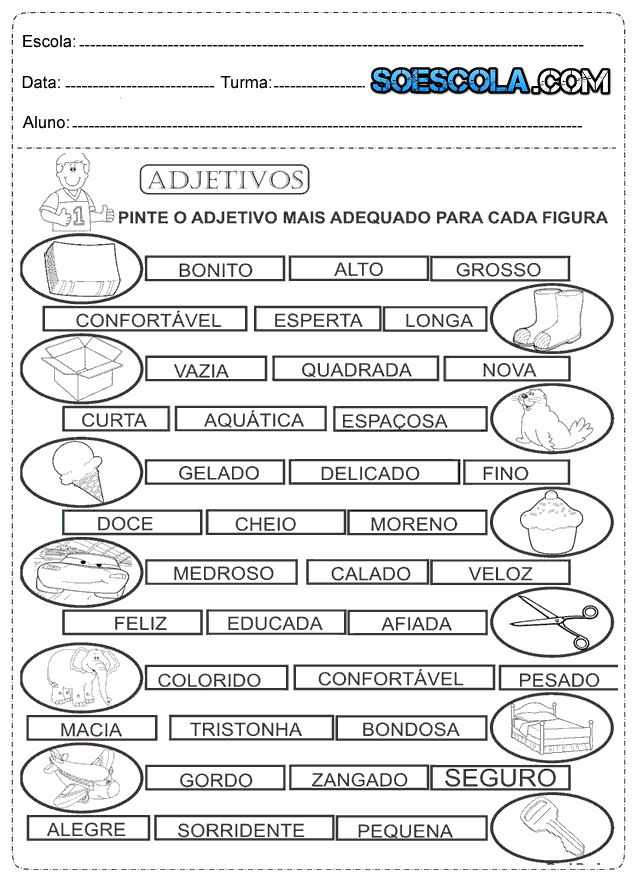 Olá amigos e amigas do SOESCOLA.COM, hoje trago para vocês Atividades para o 4° ano do ensino fundamental de Português que fala sobre, adjetivos para pintar os adjetivos mais adequado para cada figura, acentuação das palavras paroxítonas, numere os parágrafos, interpretação de texto, acentuação gráfica, complete o texto utilizando os advérbios do quadro e loteria do C e SC.