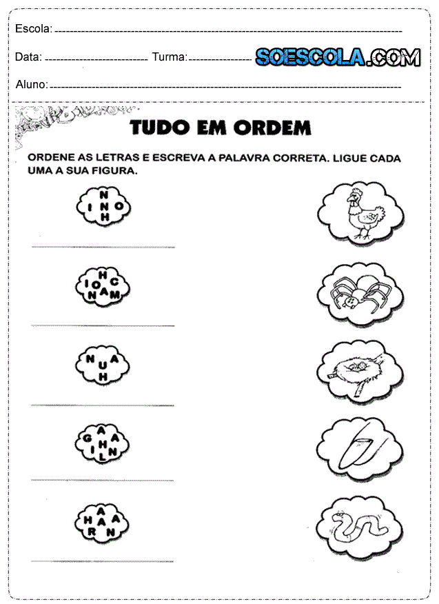 Exercícios de Português para o 1° ano a antiga alfabetização também conhecida como C. A, com muitas atividades para completar as frases com as palavras, caça – palavras, encontre e escreva a figura, auto ditado, tudo em ordem, ligue as figuras e até atividades de recortar e colar para melhorar o raciocínio lógico e o português.