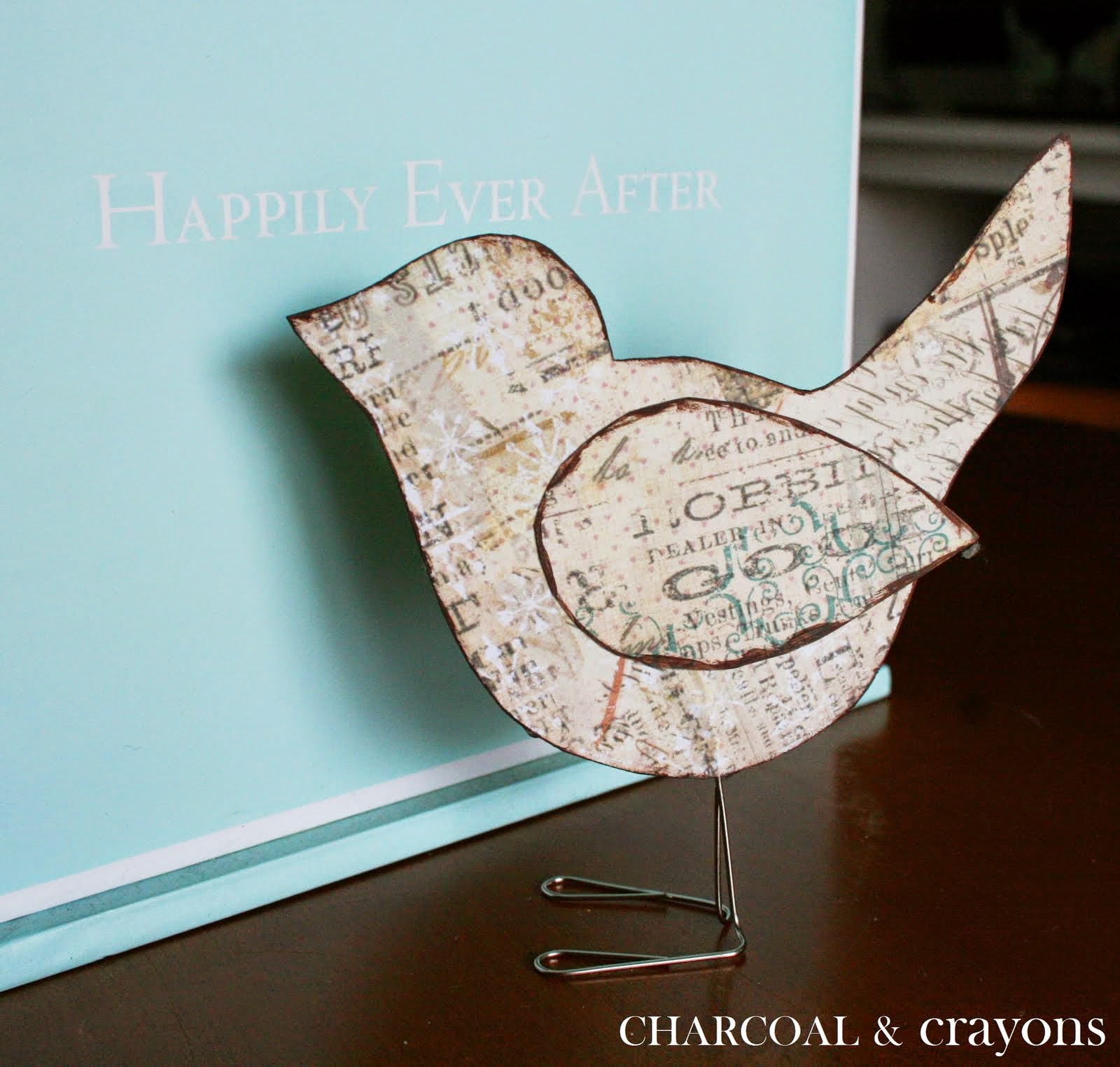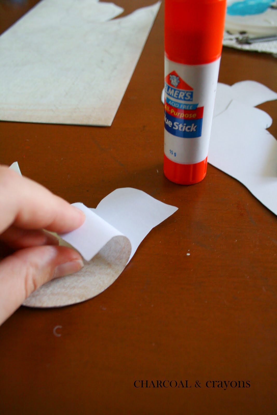 Cole as duas partes do pássaro, deixando espaço para posicionar as perninhas, depois…