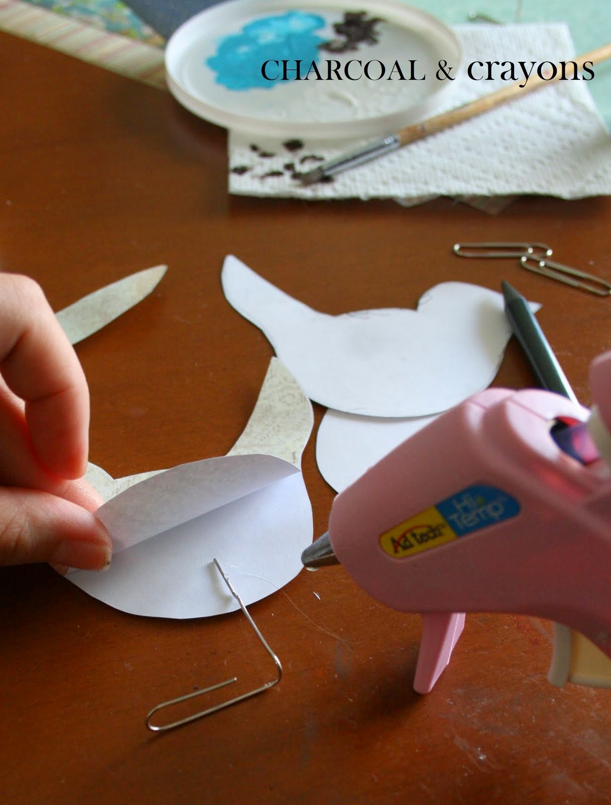 Utilizando dois clips, prepare as perninhas da pequena ave: