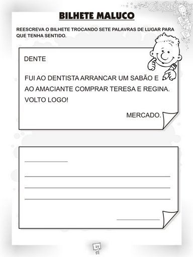 DE TEXTO: Produzir bilhetes de acordo com sua estrutura em duplas ou tendo