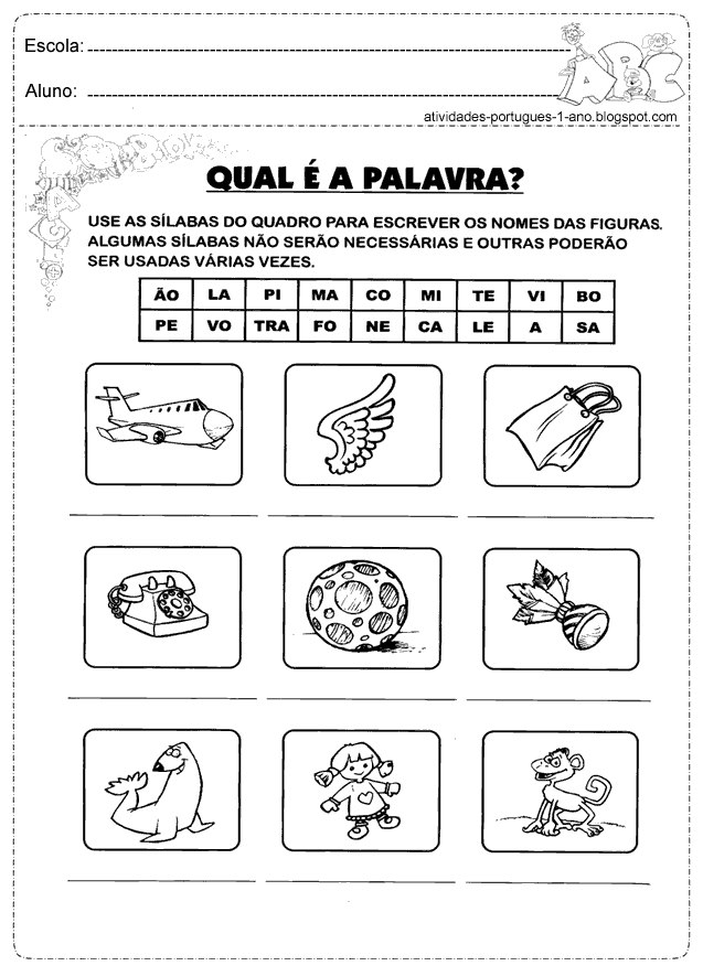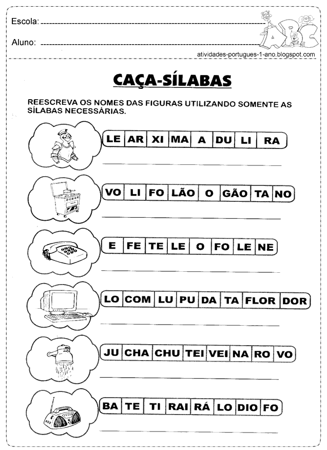 | Reescreva os nomes das figuras utilizando somente as sílabas necessárias |