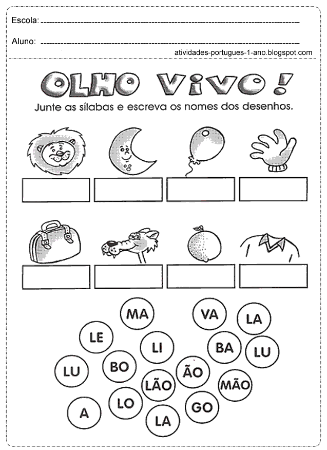 | Junte as sílabas e escreva os nomes dos desenhos |