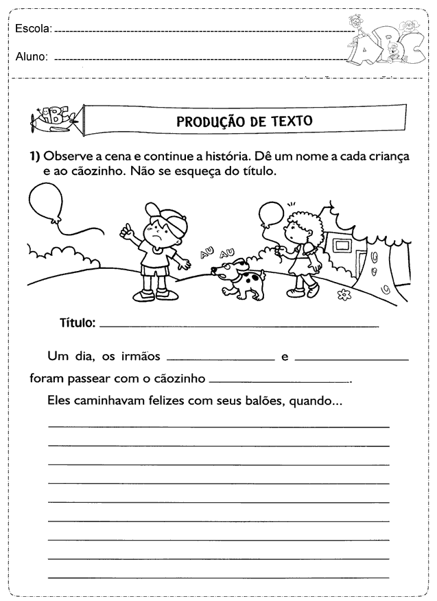 Atividades de produção de texto para imprimir