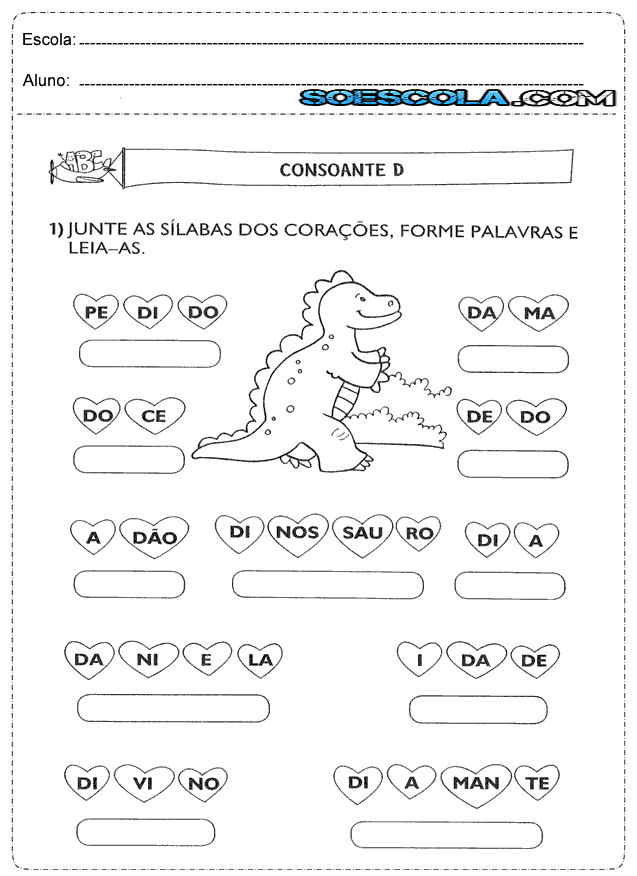 - Junte as sílabas dos corações, forme palavras e leia-as