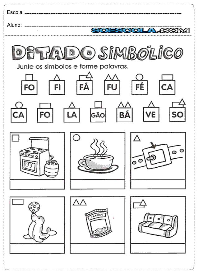 - Forme os nome dos desenhos, seguindo os símbolos, cole-os e copie-os