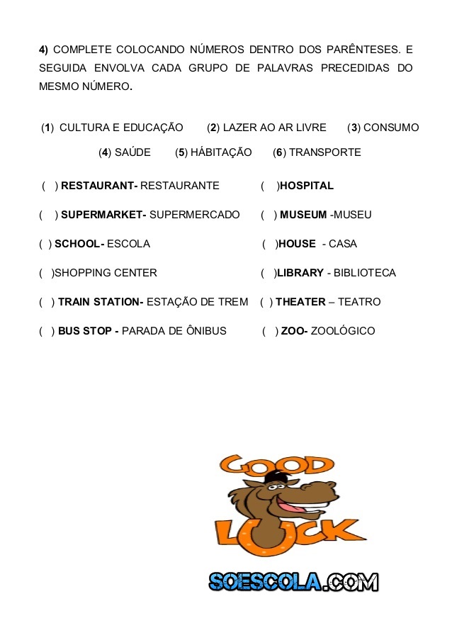 Olá amigos e amigas do SOESCOLA.COM. Hoje trago para vocês uma AVALIAÇÃO / TESTE de INGLÊS.