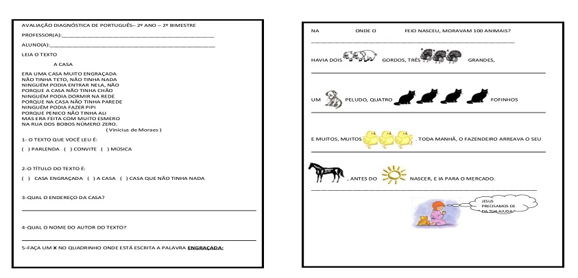 AVALIAÇÃO DIAGNÓSTICA DE PORTUGUÊS– 2º ANO